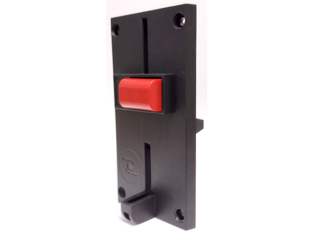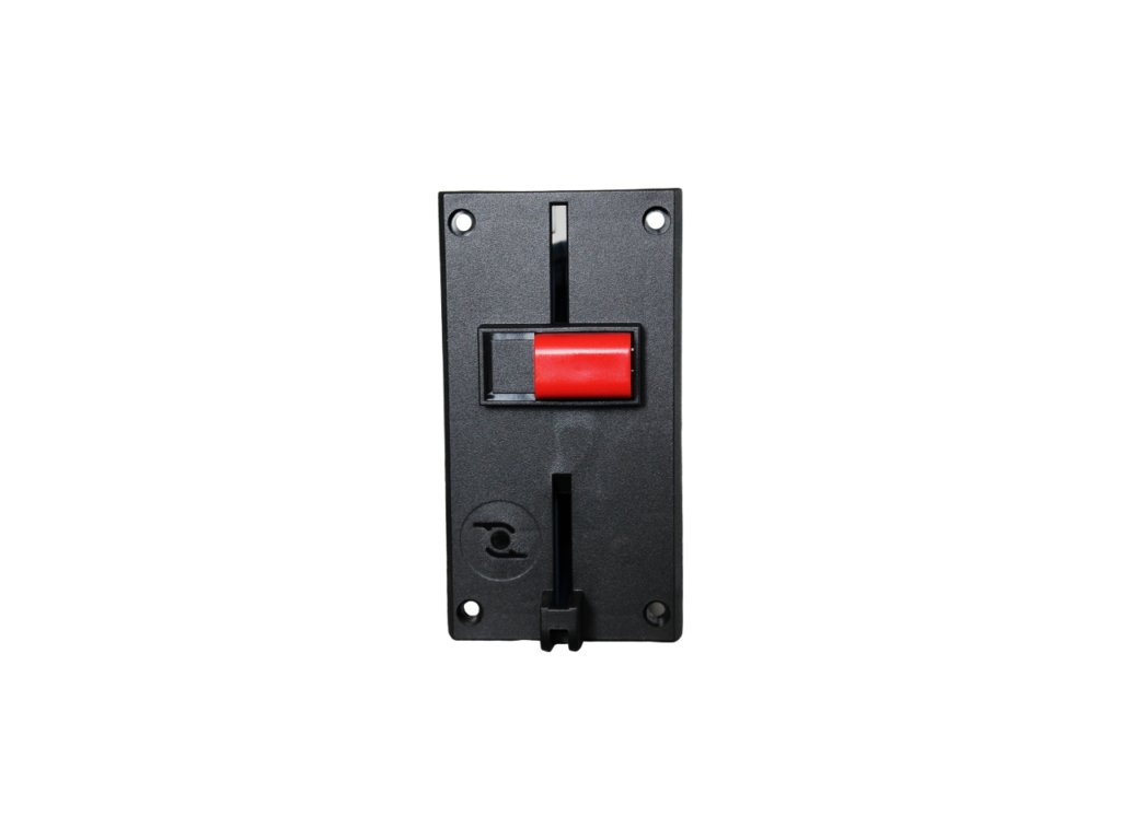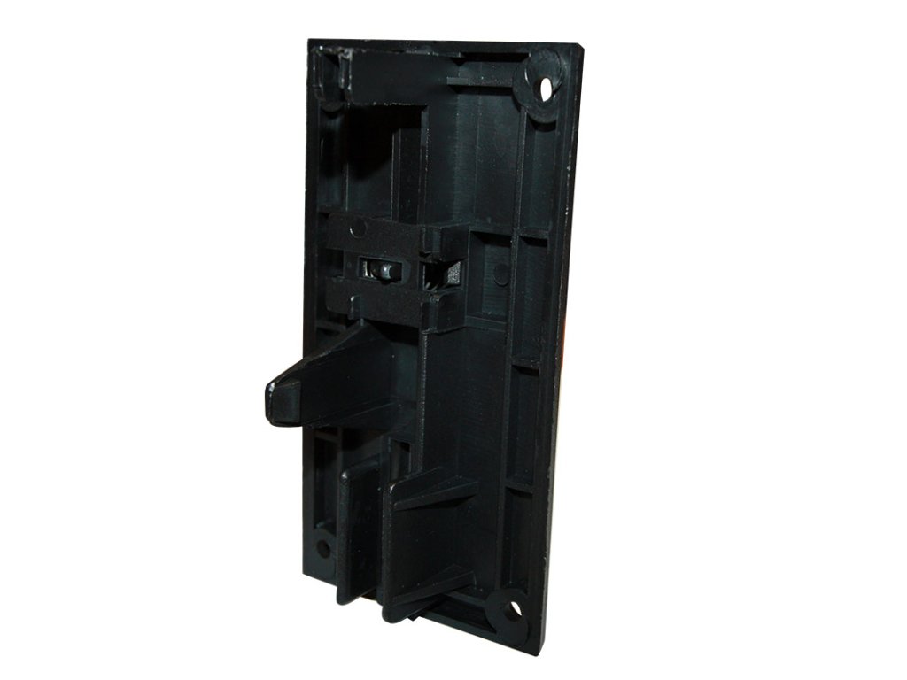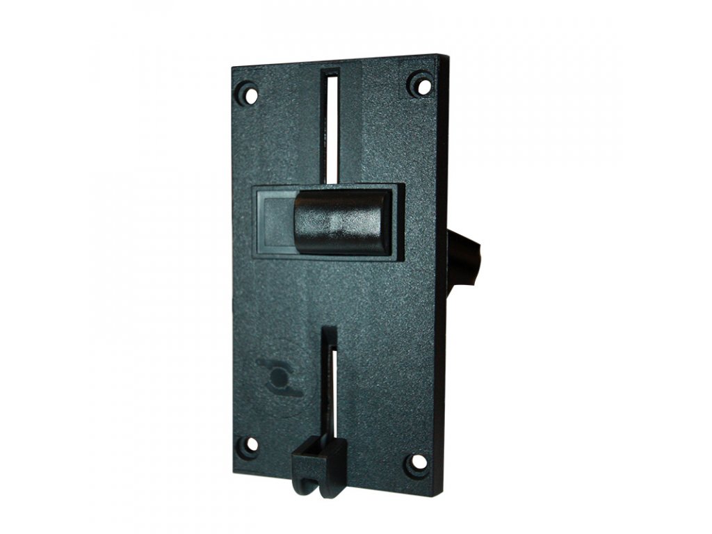 Přední plastový kryt - držák na vhazovač mincí od společnosti Comestero v černém elegantním stylu. Tento front plate je kompatibilní pro mincovníky Comestero RM5 F .