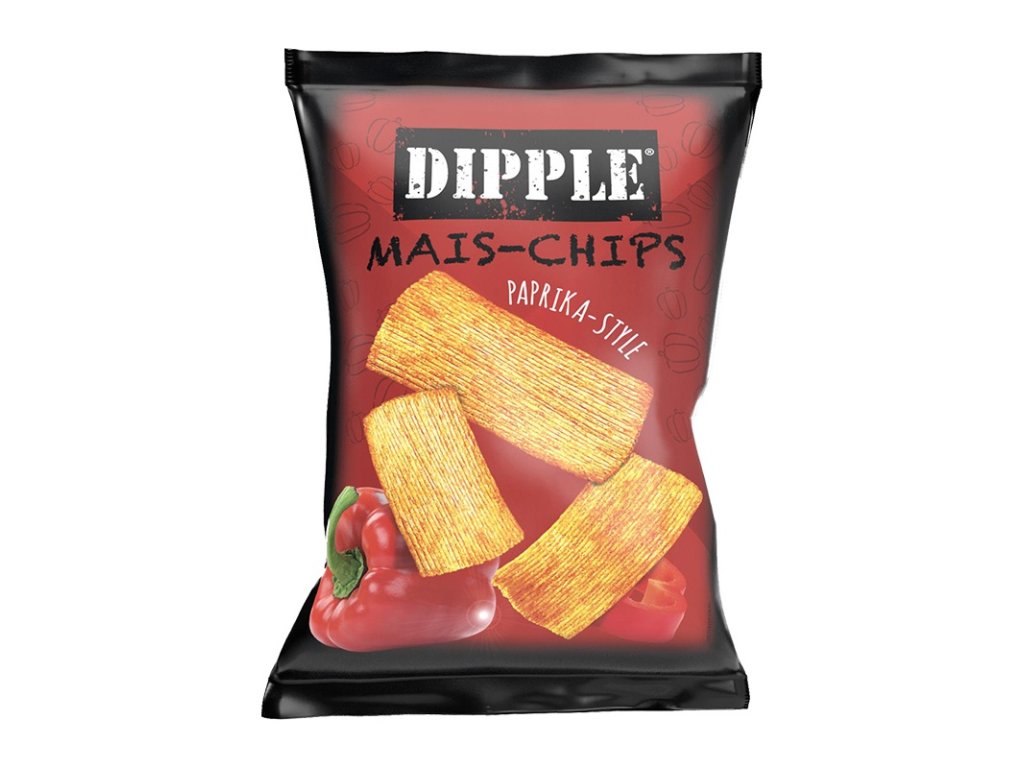 Vyzkoušejte Dipple Mais Chips 20 g Paprika Style – křupavé kukuřičné chipsy s jemně pikantní chutí papriky, které potěší všechny milovníky slaných pochoutek.