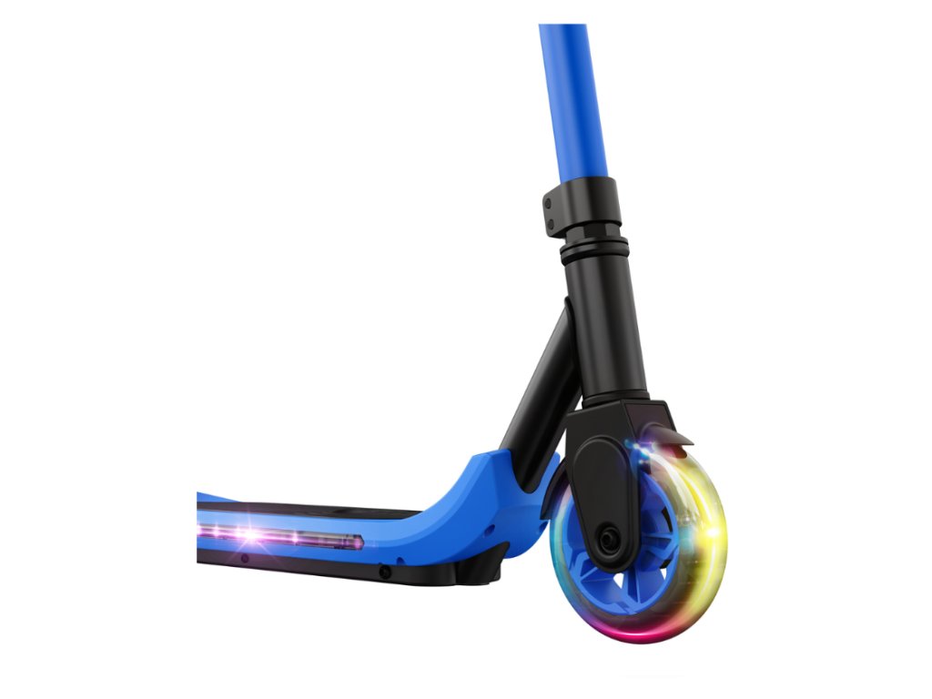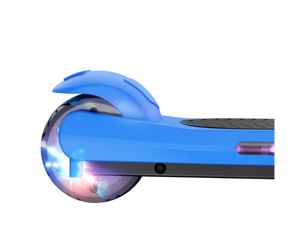 Koloběžka je vybavena stylovým LED osvětlením na nášlapné plošině i kolech, které zvyšuje viditelnost a atraktivitu jízdy.
