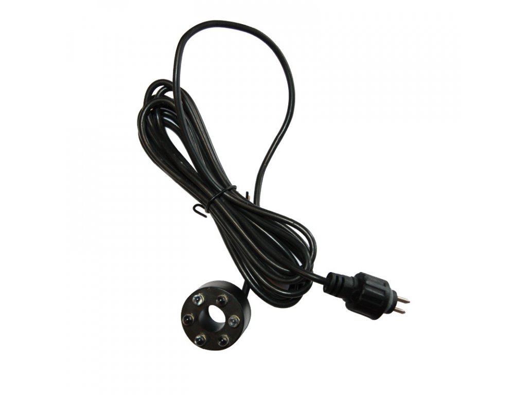 - vodě odolný kabel s 6-LED diodami teplé bílé barvy v kruhovém rozložení pro fontány či jezírka.