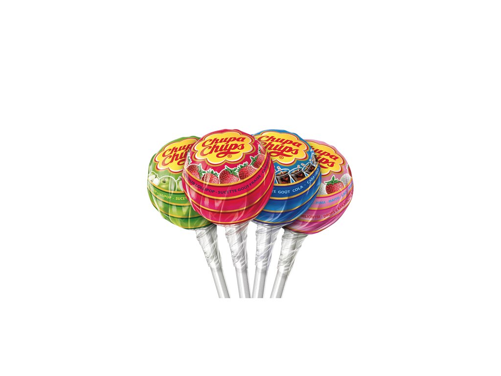 Každé lízátko ukrývá intenzivní ovocnou chuť v několika variantách – jahoda, jablko, cola, pomeranč, malina či smetana.
