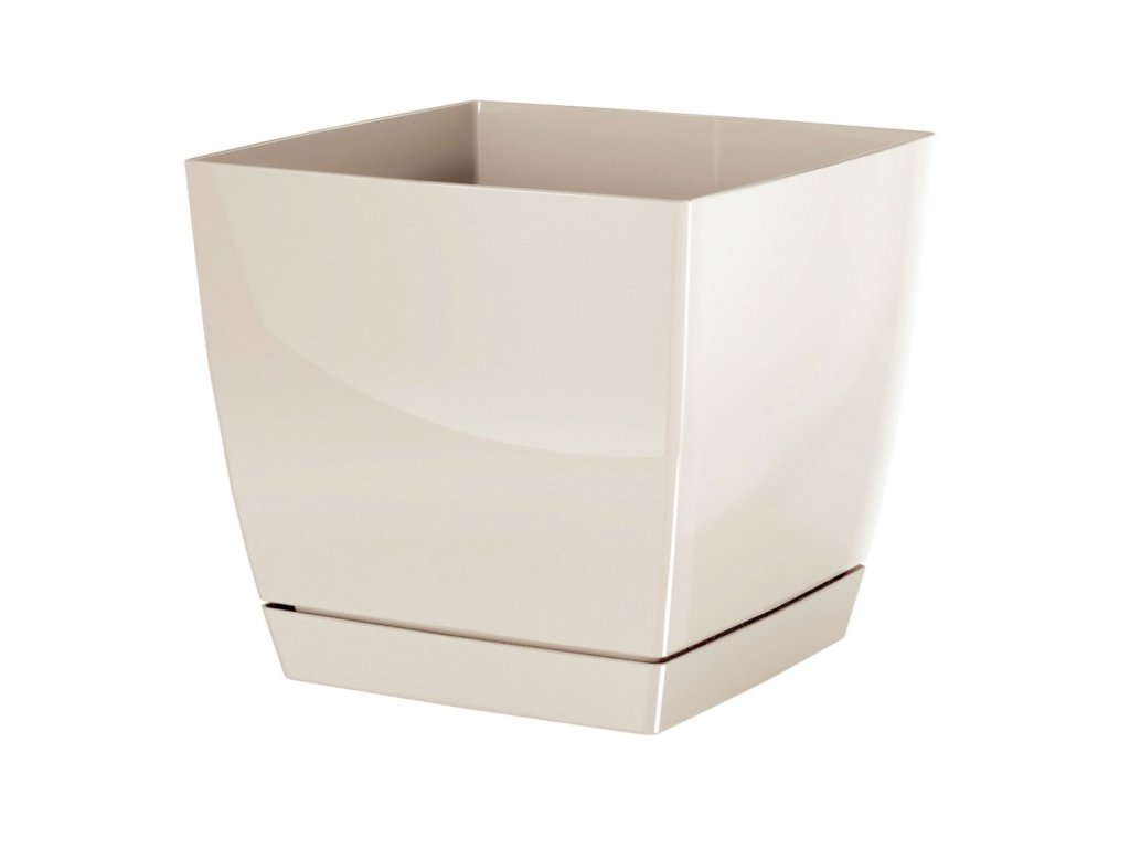 Květináč COUBI SQUARE P s miskou krémový 15,5 cm
