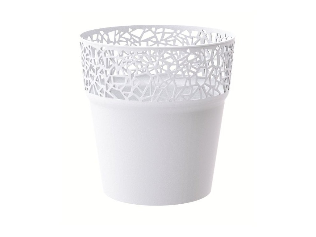 Elegantní květináč s designovým prvkem krajky, který se perfektně hodí jak na parapet, tak i na balkóny a stolky.
