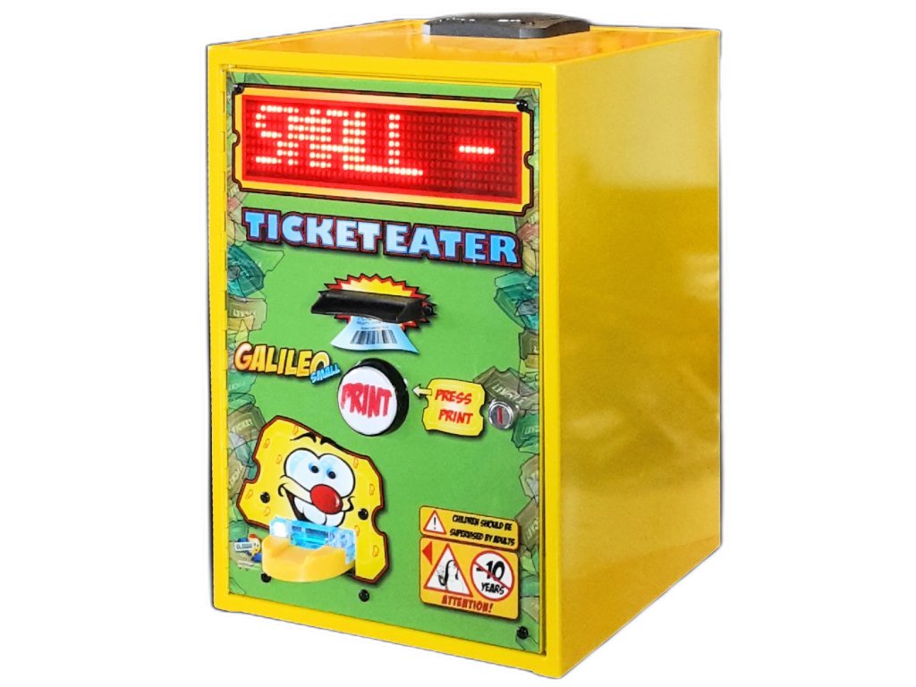 Spolu s již známými Galileo PRO a Galileo EVO je zde nový model Ticket Eater: Galileo SMALL. Je přesně jako Standard… ale v „přenosné“ verzi! Jiné podobné automaty mají dva velké problémy: lístky jsou stříhány „podélně“, takže krabice s lístky se musí velmi často měnit. Kromě toho je zcela vždy nutné, aby provozovatel zavedl lístky. To není vůbec výhodné, protože maximální satisfakcí pro hráče je předs tiket sám a automaticky obdržet papírovou účtenku! Toto zařízení řeší oba problémy jednodušším a rychlejším způsobem… a je velmi užitečné a pohodlné pro ty operátory, kteří obvykle obtížně hledají místo pro umístění standardního žrouta lístků, ale nechtějí ztratit kvalitu a spolehlivost. Galileo PRO. Vstupenky jsou nakrájeny na velmi malé kousky a do běžné tašky se vejde až 50 000 vstupenek.