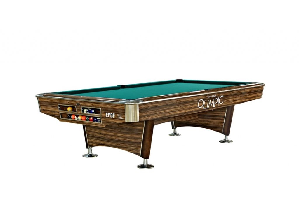Plně profesionální billiardový stůl Olimpic III je navržen tak, aby vynikal v každém interiéru. Krásně tvarované zaoblené hrany z hliníkových plátů, prvotřídní italská břidlice, turnajové plátno a pevná konstrukce zaručuje hráčům spokojenost při hře. Tento stůl je určen pro profesionály a měl by být povinným vybavením pro každý profesionální kulečníkový klub. K dispozici je ve velikosti 9ft a je certifikován společností PZBIL.