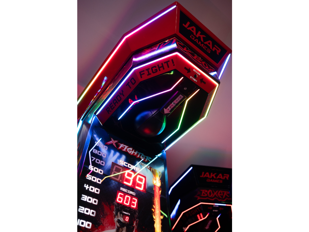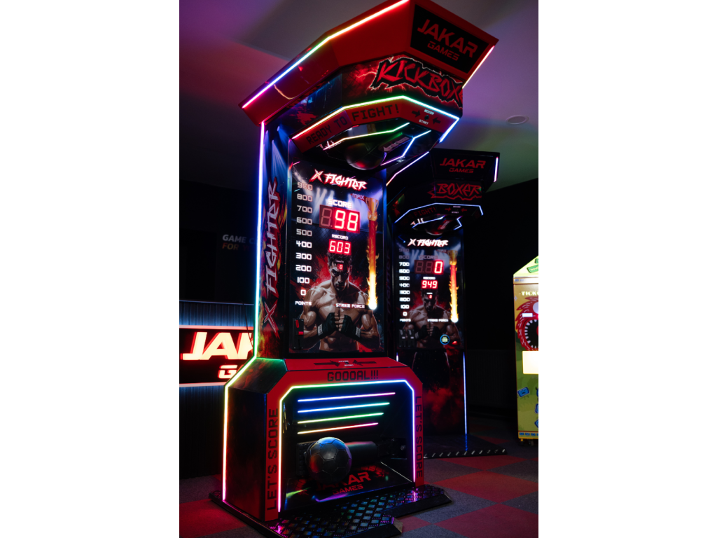 KICKBOXER X je nejpokročilejší kickboxerský arkádový automat na trhu. Čerpá inspiraci z profesionálních bojových sportů a moderního průmyslového designu. Byl vyroben pro provozovatele, kteří očekávají vysokou odolnost, snadnou obsluhu a stabilní zisky.