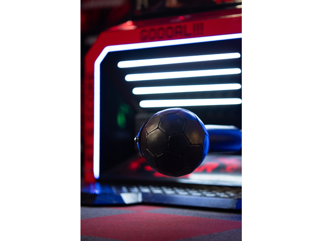 Velký a přehledný displej zobrazuje skóre jasně a srozumitelně, což podtrhuje rychlý a soutěživý charakter hry založené na kopech. Hráči tak okamžitě chápou výsledek a mají motivaci zlepšovat své výkony.