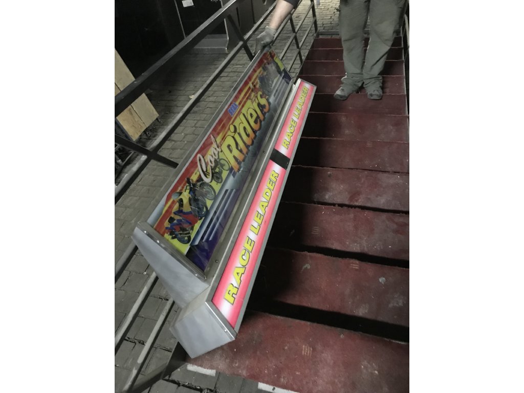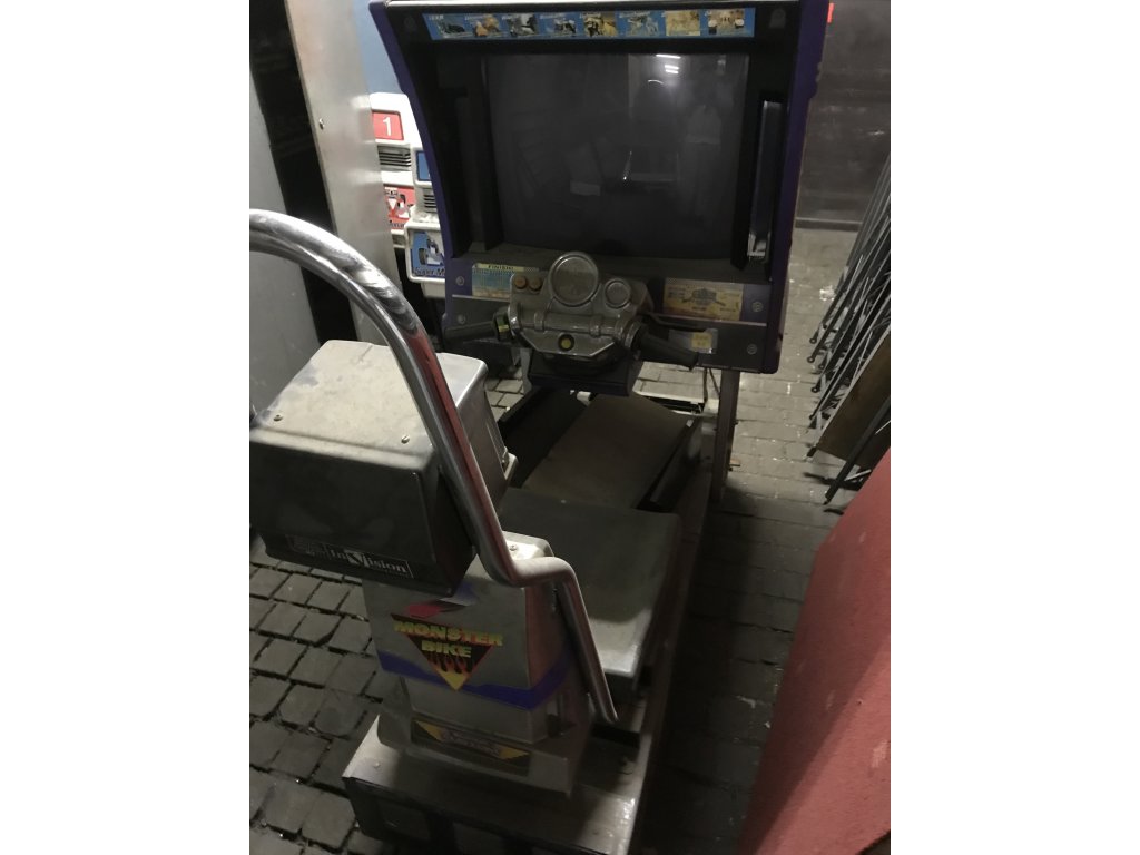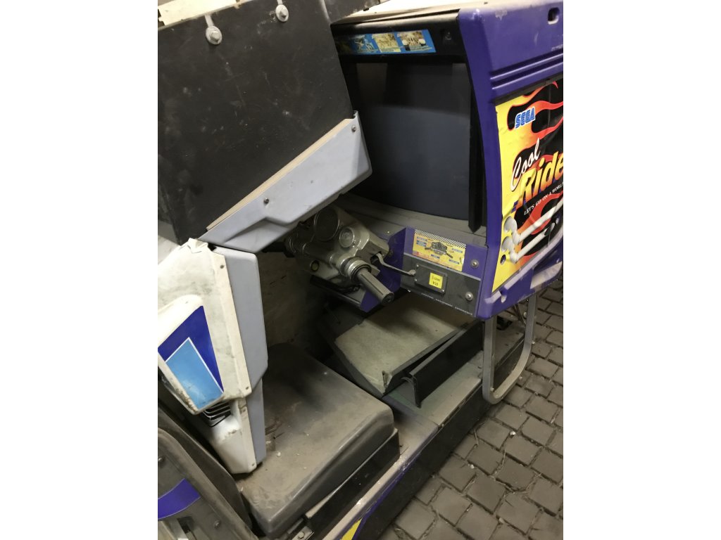 Nabízíme k prodeji použitý nefunkční arkádový automat ve tvaru motorek. Tato hra bylo vyráběna jen v omezeném limitovaném počtu a vyskytovala se převážně v Japonsku a pár kusů těchto arkádových her bylo dovezeno i do USA. Hra byla kopií automobilových závodů převedených na motorky. Stroj je viditelně v horším stavu.