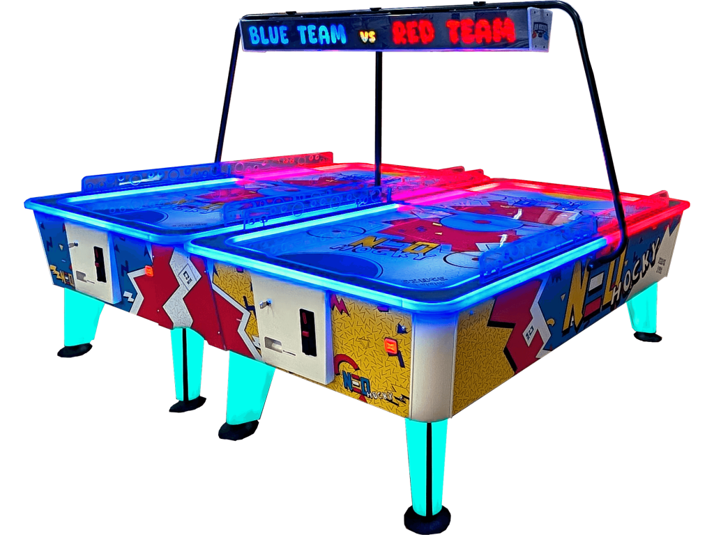 NEO Twin je ideální volbou pro provozy, které chtějí nabídnout moderní a atraktivní air hockey s vysokou herní kvalitou a výrazným designem, a zároveň umožnit hru více hráčům najednou.